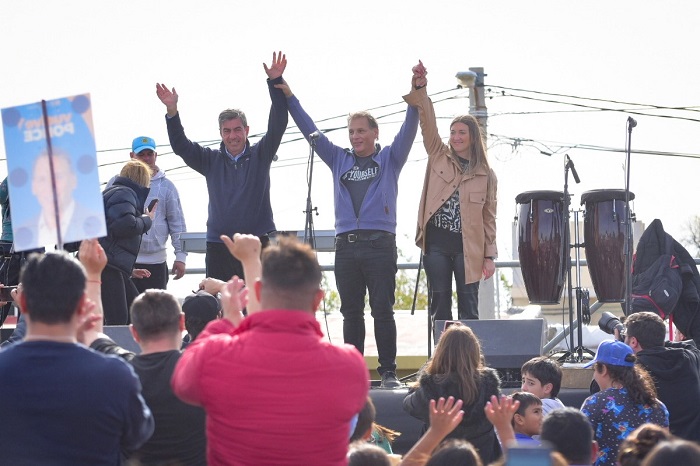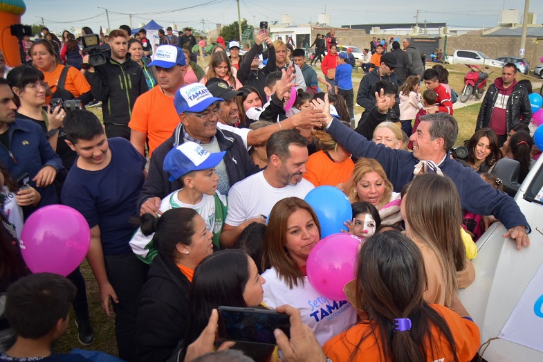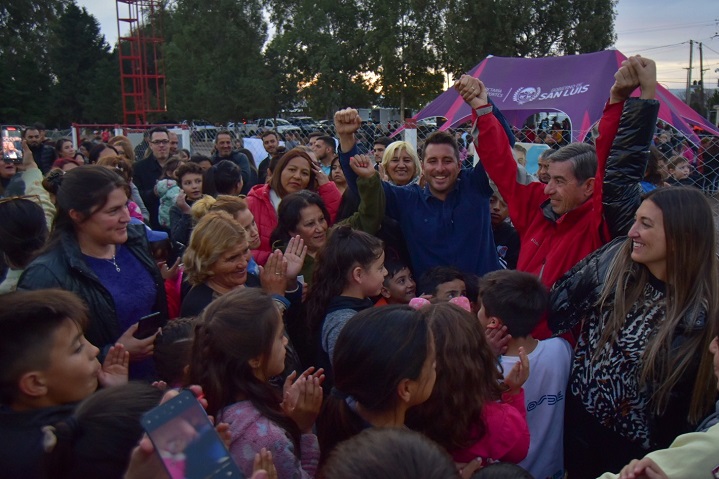Después, tras pasar la caravana por el barrio “Serranías Puntanas”, en la plaza del Barrio Solidaridad se juntaron con el intendente municipal Sergio Tamayo, que busca la reelección por el espacio “Celeste Unidad”.