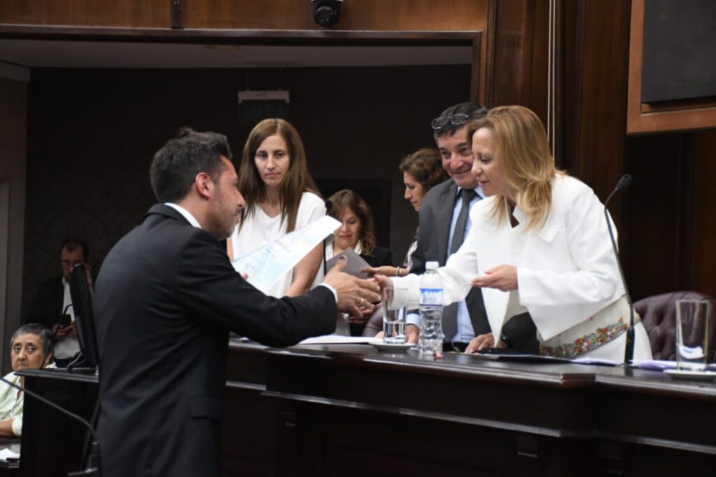 En el acto, que tuvo la participación de muchas familuas, renovaron sus bancas Verónica Causi y Ricardo Giménez. Por Mónica Becerra, que renunció para ocupar un cargo en el gabinete del gobernador electo Claudio Poggi lo hizo Miriam Alicia Serra.