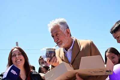 Allí, tras recibir un obsequio, el primer mandatario puntano anunció la construcción de 10 viviendas más para esta localidad, un centro cívico, un SUM y una plaza, lo cual fue celebrado con júbilo por la gran cantidad de vecinos y vecinas que acompañaron la actividad.