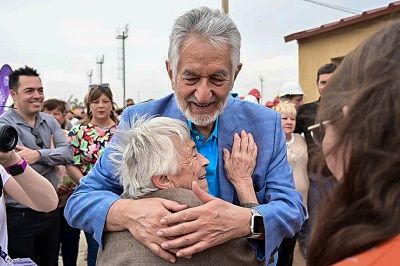 En la continuidad de la gira institucional, en Buena Esperanza el primer mandatario provincial Alberto Rodríguez Saá, junto al intendente Fernando Larroudé, visitó la obra en la que se construyen 32 viviendas por un monto de $184.489.267,58, pertenecen al Plan Casa Propia y tienen un avance del 80%.