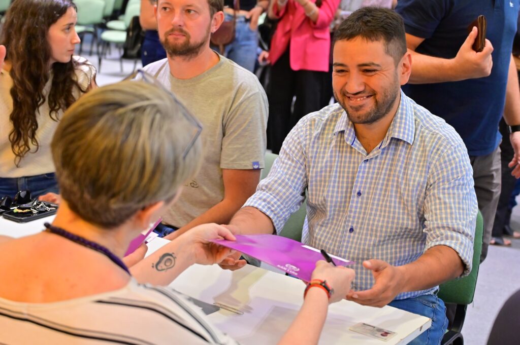 Afiliados de asociaciones de profesionales de la provincia recibieron este miércoles por la tarde los trámites de adjudicación de sus lotes, los cuales contarán con servicios de luz, agua y cloacas. Los adjudicatarios podrán hacer uso del bien a partir de esta semana.