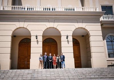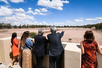 Luego recorrieron la terraza del teatro, donde observaron cómo día a día progresa la obra de la Villa Deportiva que se construye en el predio del ex Hipódromo.