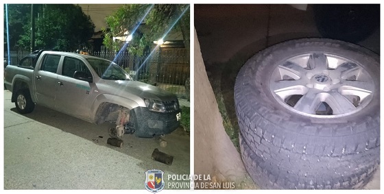 El Departamento Relaciones Policiales informó que en las primeras horas de este martes, efectivos de la Comisaria Seccional 8° fueron alertados por personal del Sistema Inteligente de Seguridad Provincial (SISPRO), que un grupo de personas había sustraído dos neumáticos de una Volkswagen Amarok, estacionada en calle San Juan entre Suipacha e Italia, para luego darse a la fuga a bordo de un Renault 19.