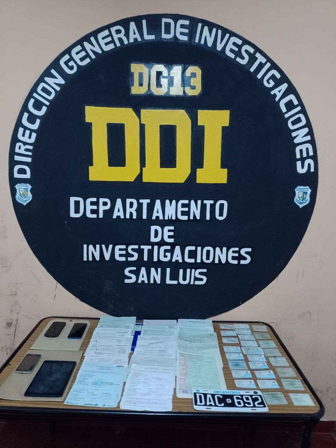 En los domicilios secuestraron: 30 cedulas de identificación de vehículos, 9 títulos, formularios 08, 02, 12, 13, una chapa patente, 3 teléfonos celulares, una tablet y documentación.