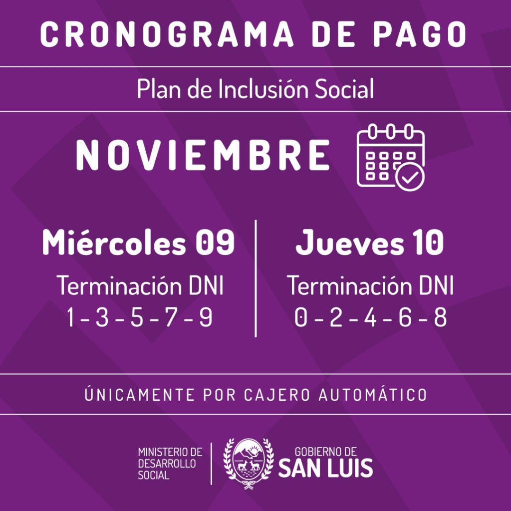 A partir de este miércoles 9 y jueves 10 de noviembre, los beneficiarios de Inclusión Social cobrarán el pago correspondiente al mes pasado.