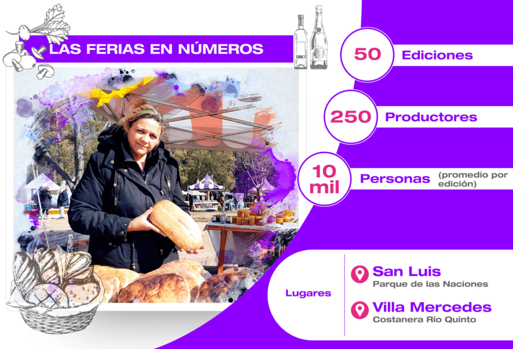En el año 2022 se realizaron 11 Ferias de Pequeños y Medianos Productores, seis en San Luis y cinco en Villa Mercedes y están previstas otras 4, dos en cada ciudad.