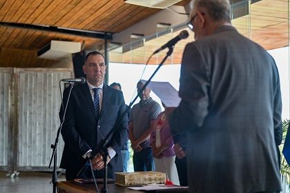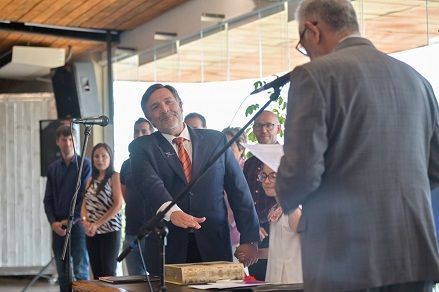 En una ceremonia que duró menos de 10 minutos y en un Salón de la Puntanidad colmado, el gobernador Alberto Rodríguez Saá le tomó juramento a Marcelo Amitrano y a Claudio Latini como ministros de Educación y Seguridad, respectivamente.