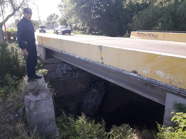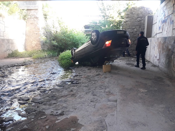 El vehículo Chevrolet circulaba de oeste a este y por motivos que establecerán los peritos se despistó, cayó sobre el cauce y quedó con las cuatro ruedas para arriba.