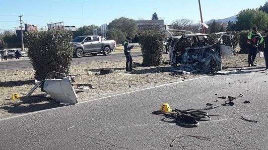 Las imágenes corresponden al espectacular y grave accidente que esta mañana sucedió en la Avenida Santos Ortíz, en la ciudad de San Luis en las cercanía del San Luis Shopping/hiper VEA.