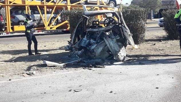 La violencia del impacto provocó que el vehículo quedara literalmente destruido, en particular en la parte frontal.
