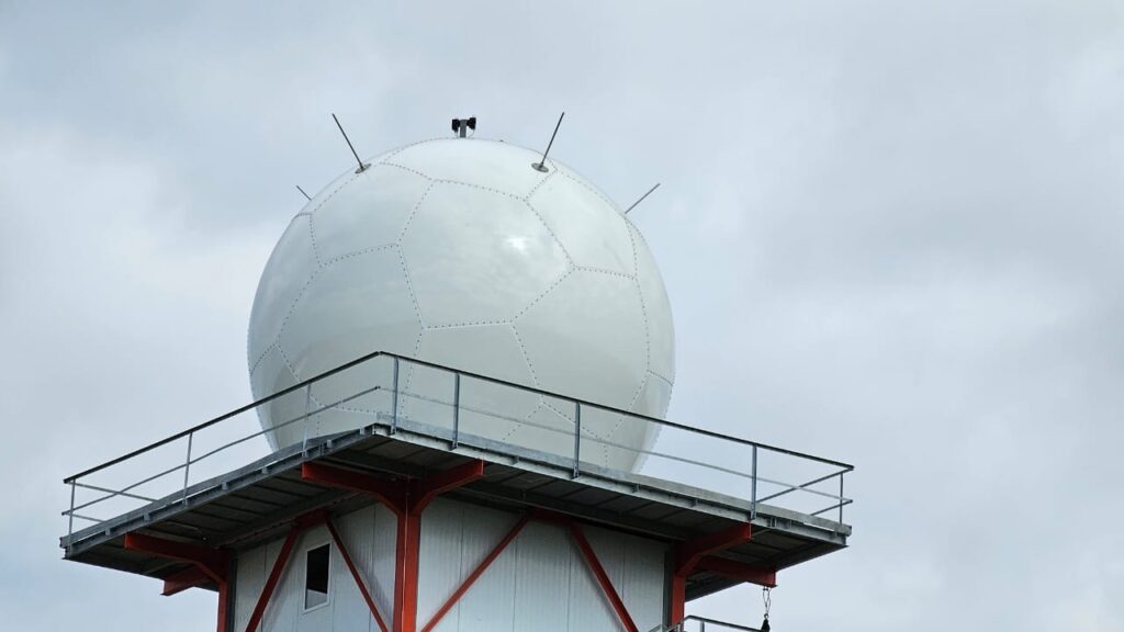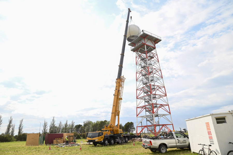 Este jueves el equipo de trabajo instaló el radomo, una esfera que sirve de protección del radar, en lo alto de la torre de 33 m instalada en la V Brigada Aérea de Villa Reynolds. De esta forma se concluyó con la última etapa de instalación física de la obra, y se comienzan con las tareas de calibración.