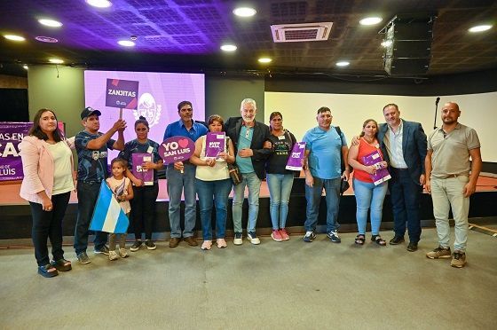 La ceremonia, en la que también se les otorgó el contrato de adjudicación, benefició a: 4 familias de Balde, 4 de San Jerónimo, 4 de Alto Pencoso, 4 de Alto Pelado, 4 familias de Zanjitas,14 de Cortaderas, 2 familias de Juan Llerena, 12 de Las Chacras y 4 de Potrerillo.