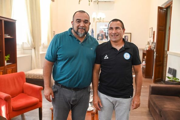 El intendente de Villa Mercedes Maxi Frontera le dio la bienvenida a Silvio Velo, capitán del equipo argentino de fútbol de personas no videntes.