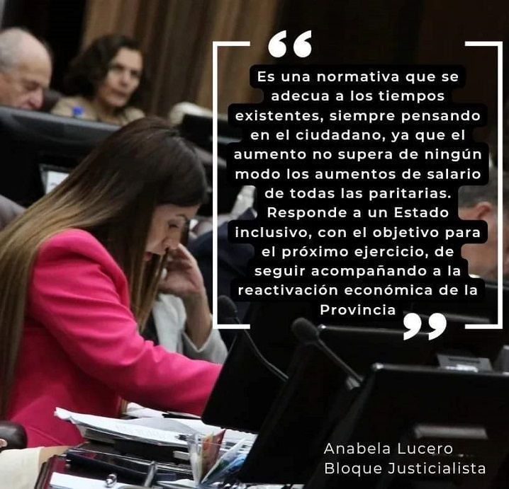 La miembro informante de este proyecto de Ley fue la diputada Anabela Lucero (Frente Justicialista) y dijo que “es una normativa que se adecua a los tiempos existentes, siempre pensando en el ciudadano, ya que el aumento no supera de ningún modo los aumentos de salario de todas las paritarias y la misma responde a un Estado inclusivo con el objetivo para el próximo ejercicio de seguir acompañando a la reactivación económica de la Provincia, que nos permita generar fuentes de trabajo genuinas y que los niveles de actividad comienzan a crecer para lograr una mejor calidad de vida para todos los puntanos”.