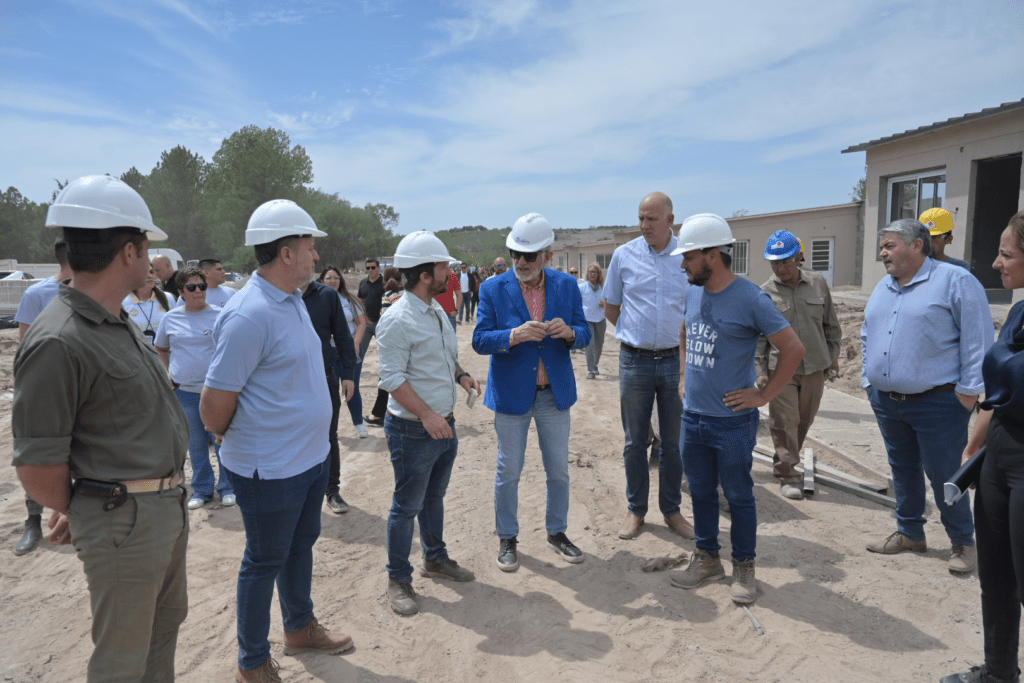 Durante la recorrida, el jefe de Estado charló con los trabajadores de la construcción y dialogó sobre la importancia de la forestación en la zona.