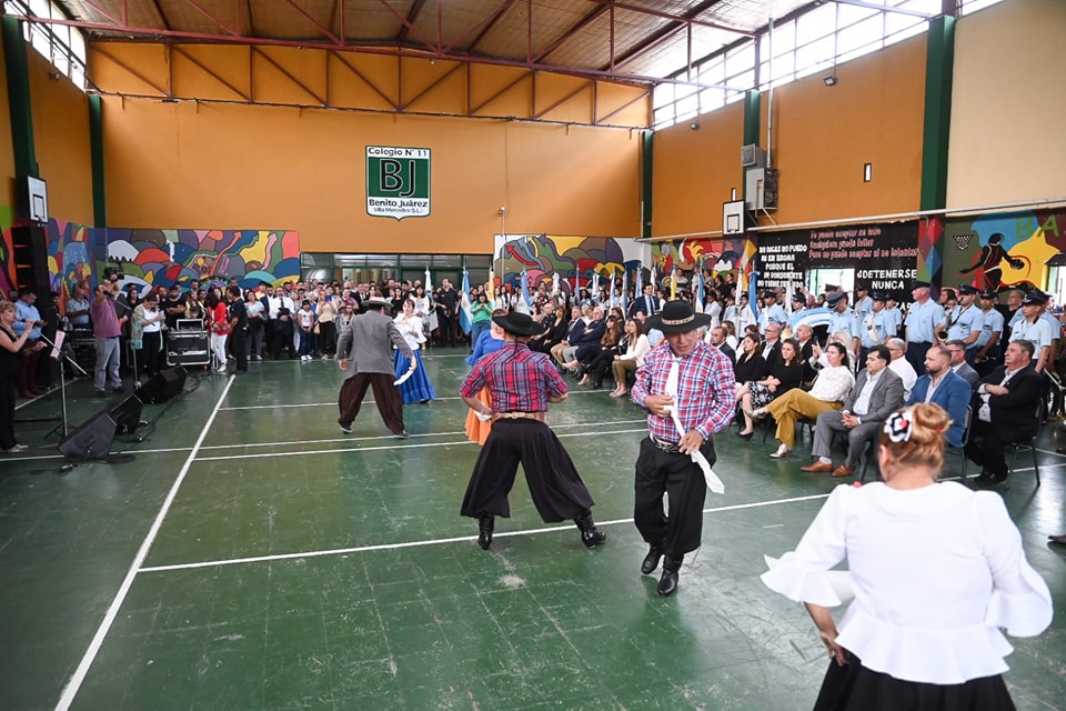 El acto central por el 167° aniversario de Villa Mercedes se llevó a cabo en el salón de usos múltiples del Colegio Benito Juárez. La celebración, que tradicionalmente se realiza en la Plaza Lafinur, se trasladó al establecimiento debido a las condiciones climáticas.