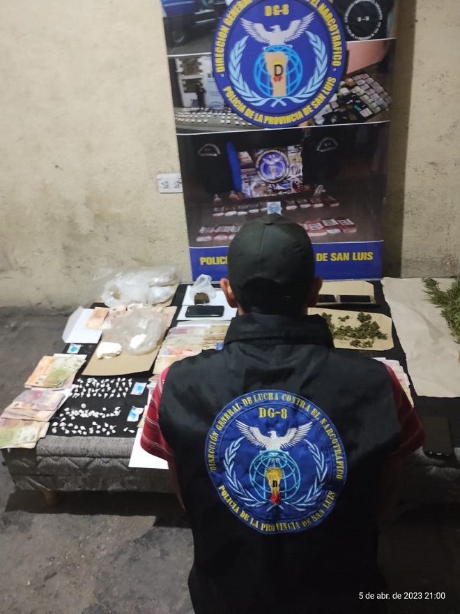 Fue detenida días atrás, cuando la Policía realizó un allanamiento en una vivienda ubicada en calle Sargento Cabral al 60 de la ciudad de San Luis y secuestró: cuatro celulares, marihuana, la que fraccionada alcanzaría 255 dosis aproximadamente, que puesta a la venta tendrían un costo de $586.500; cocaína suficiente para la elaboración de 360 dosis aproximadamente, valuada en $2.700.000 pesos; dinero en efectivo y una planta de la variedad Cannabis Sativa.