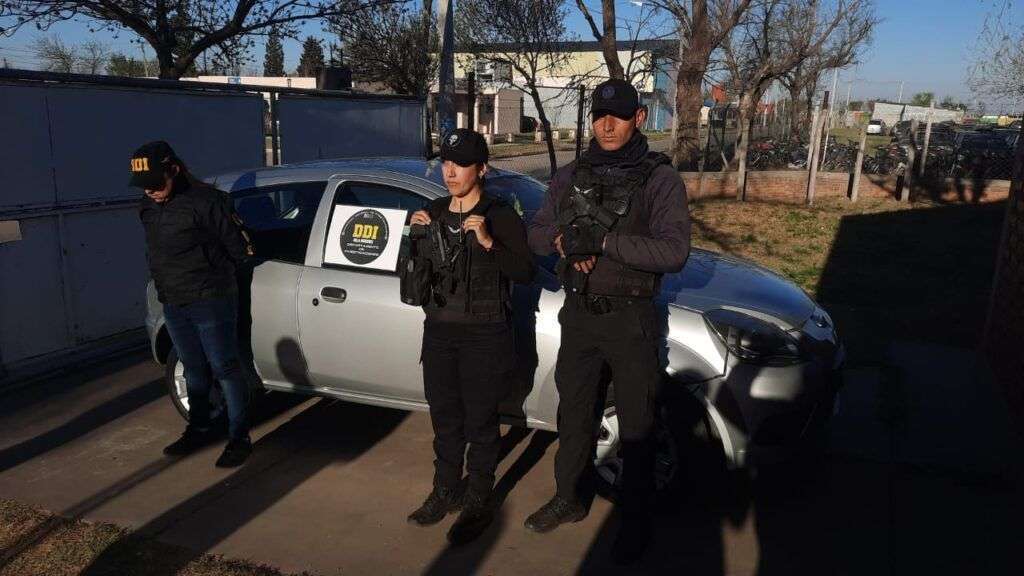 Relaciones Policiales destacó que el hallazgo del Ford Ka gris fue el resultado de la tarea de los efectivos del Sistema Inteligente de Seguridad Provincial y de la División Respuesta Inmediata Motorizada. Lo interceptaron en calle Lamadrid y era buscado desde Mendoza ya que fue producto de un “hurto agravado”.