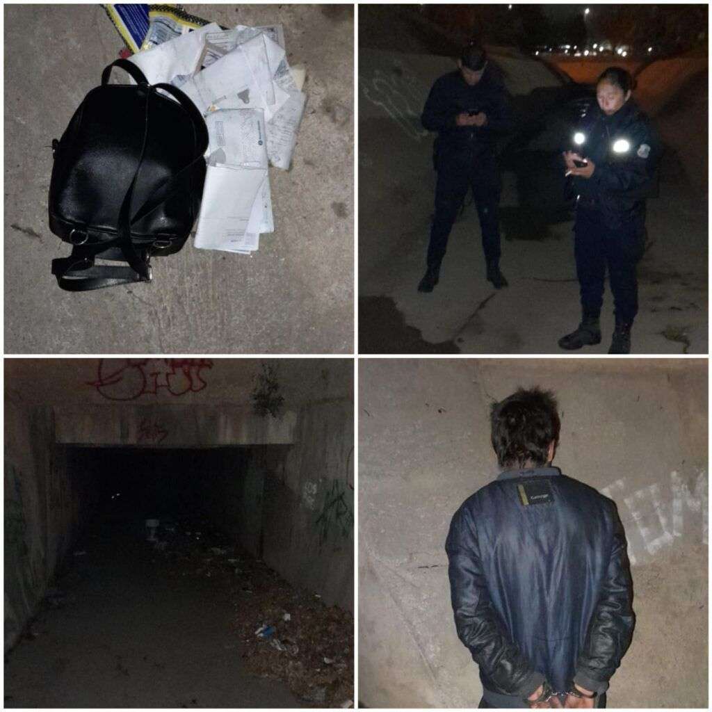 Con las características aportadas, los policiales hallaron al delincuente oculto dentro de un canal de desagüe pluvial, ubicado a pocos metros del lugar, teniendo en u poder los bienes sustraídos a la vecina que reside en el barrio Manuel Lescano.