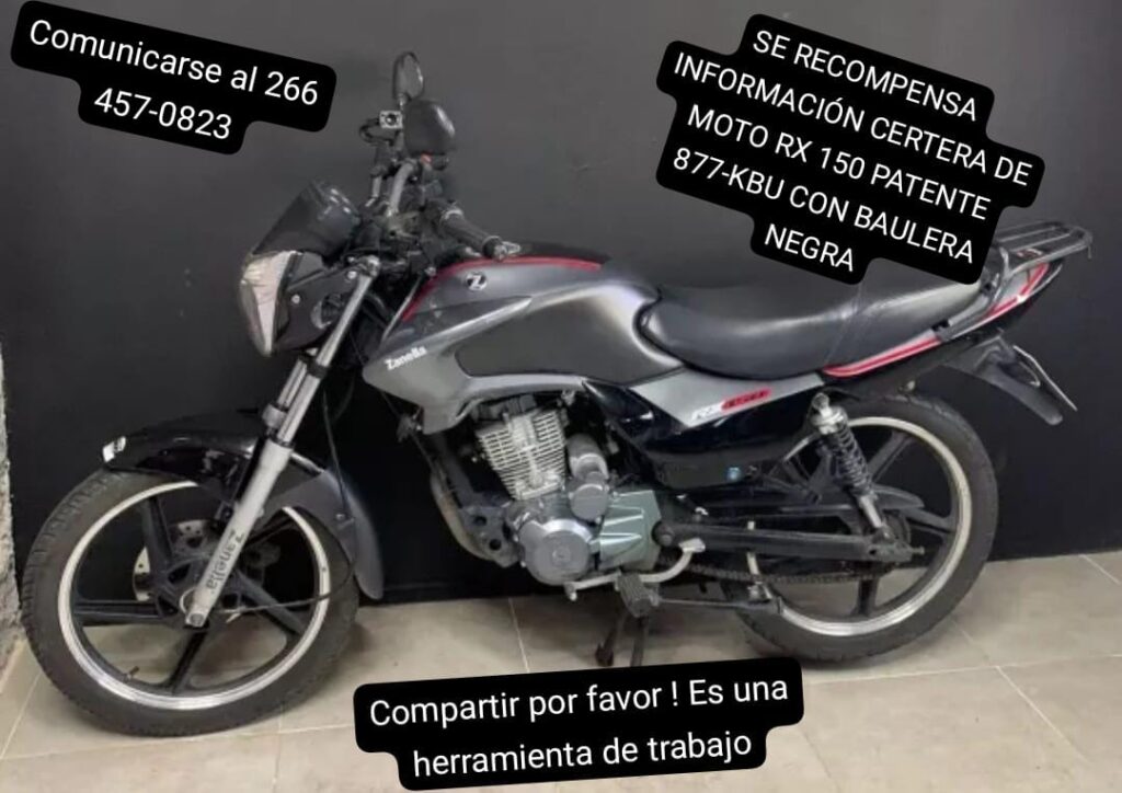 Esta motocicleta fue sustraído de un complejo habitacional situado en la esquina del Pasaje Vives y calle Pasteur en las cercanías del viejo hospital de la ciudad de San Luis, donde actualmente funciona el Hospital de Pediatría.