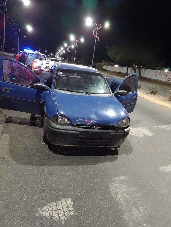 A poca distancia, una patrulla intento interceptarlos, pero no pudo detenerlos ya que fue atropellado por el Corsa azul en el que se desplazaban.
