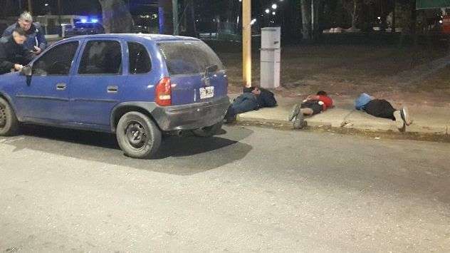 En el Corsa se movilizaban tres jóvenes que quedaron detenidos a la vista de cientos de peatones y automovilistas que circulaban por la transitada esquina.