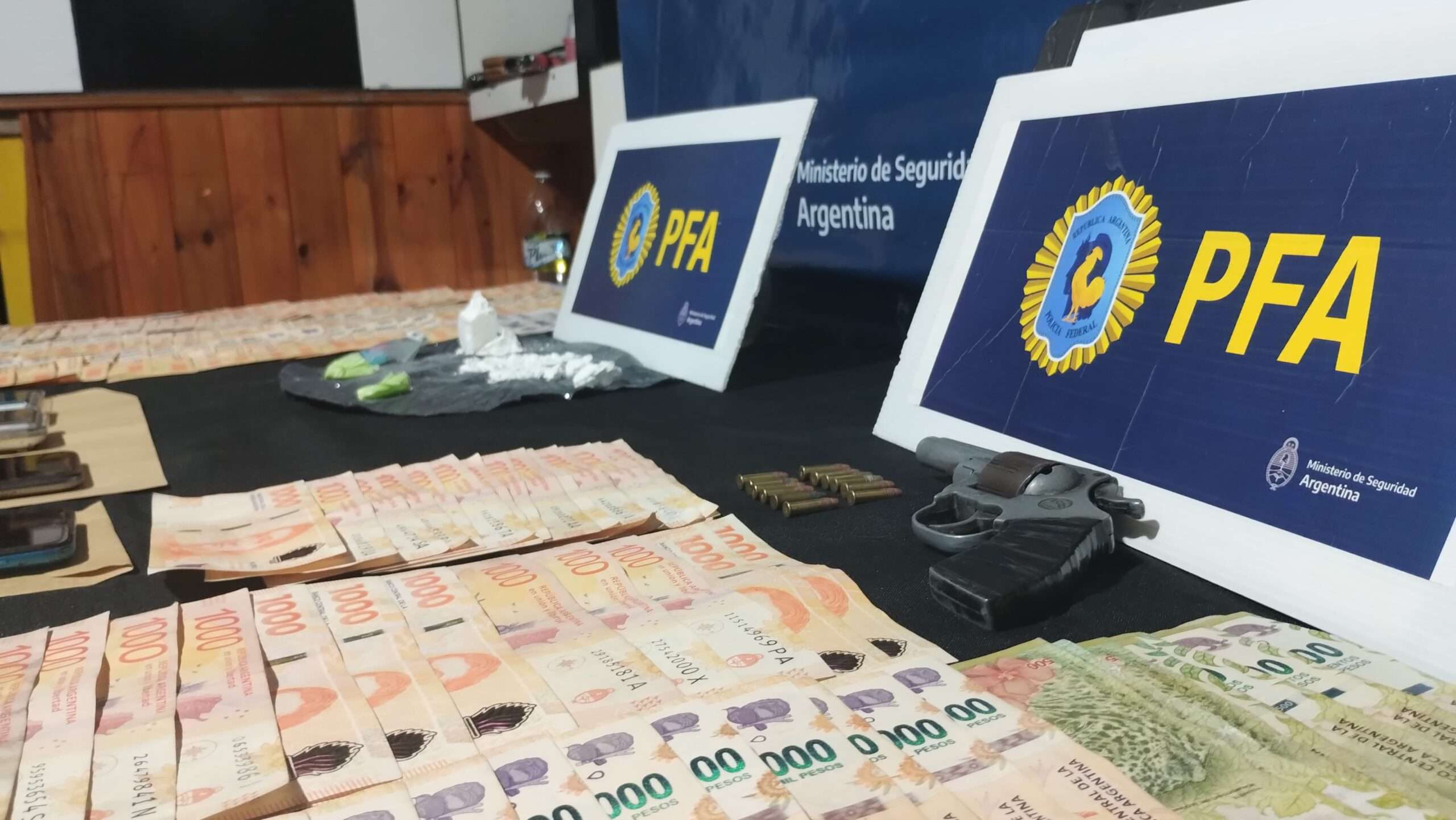 En el operativo de allanamiento los efectivos lograron la detención del sospechoso, secuestrándose clorhidrato de cocaína de máxima pureza por un valor de más de un millón y medio de pesos.Un arma de fuego con doce municiones, dos vehículos, algo más de 300 mil pesos en efectivo, teléfonos celulares, balanzas digitales de precisión, siendo el dinero producto de la comercialización de esta sustancia ilícita.
