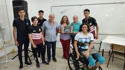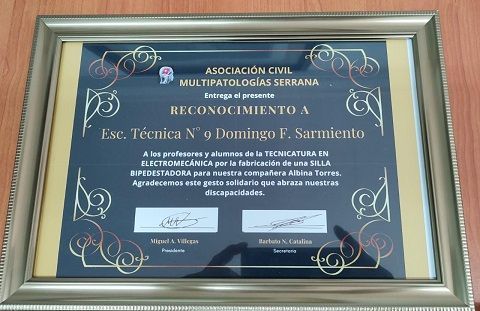 El lunes 19 de diciembre, en el cierre de actividades anuales, entregaron una silla Bipedestadora, producida por las manos de alumnos de varios cursos de la Tecnicatura en Electromecánica.