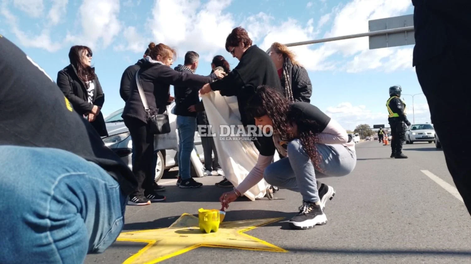 Este viernes la familia y los allegados de Rocío Amancay Pedernera, la joven motociclista que fue atropellada en la Avenida Santos Ortiz (en las cercanías del puente del barrio Tibiletti) por una camioneta cuando regresaba de trabajar, la recordaron en el escenario de la tragedia pintando una estrella amarilla.