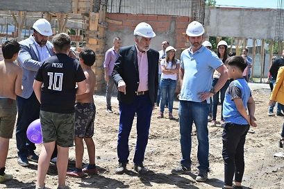 Alberto Rodríguez Saá también inspeccionó la obra que se realiza en la calle Chile, entre Rafael Cortez y Ameghino, en el barrio Libertad. Allí se edifica, ya con un 30% de ejecución, una escuela de características sustentables que contará con nivel inicial, primario y secundario.